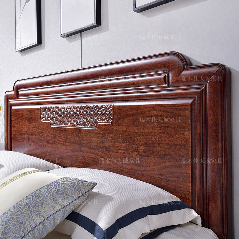 实木床现代简约胡桃木主卧1.5米双人床1.8米主卧轻奢婚房双人床