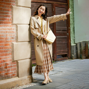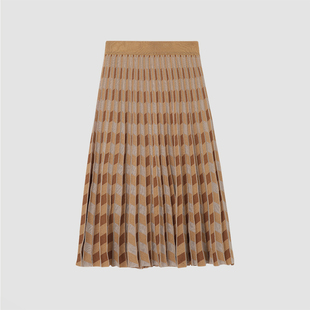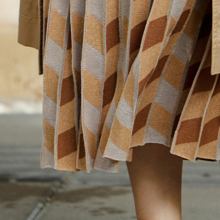 美拉德穿搭高腰棕色a字半身裙女大码 胖mm遮肚藏肉百褶显瘦长裙冬