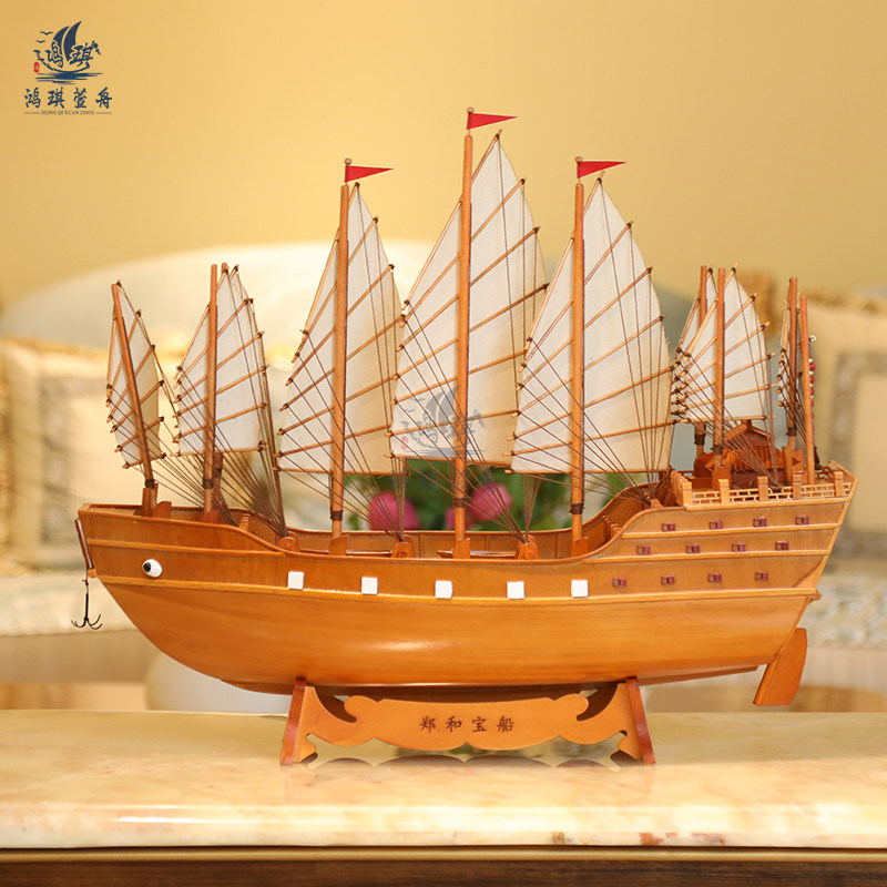 郑和宝船一帆风顺帆船摆件工艺品木帆船模型福船手工创意中式 饰 装