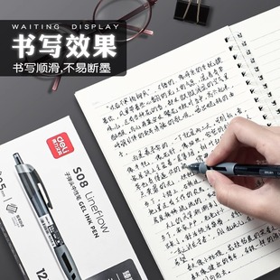 得力S08按动笔中性笔学生考试专用红笔碳素黑色0.5按压式 速干水笔蓝黑笔墨蓝护士教师红色水性臻顺滑签字笔芯