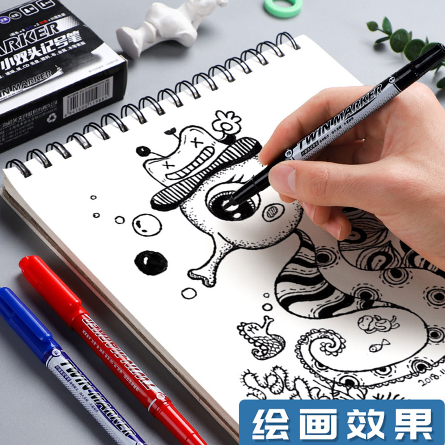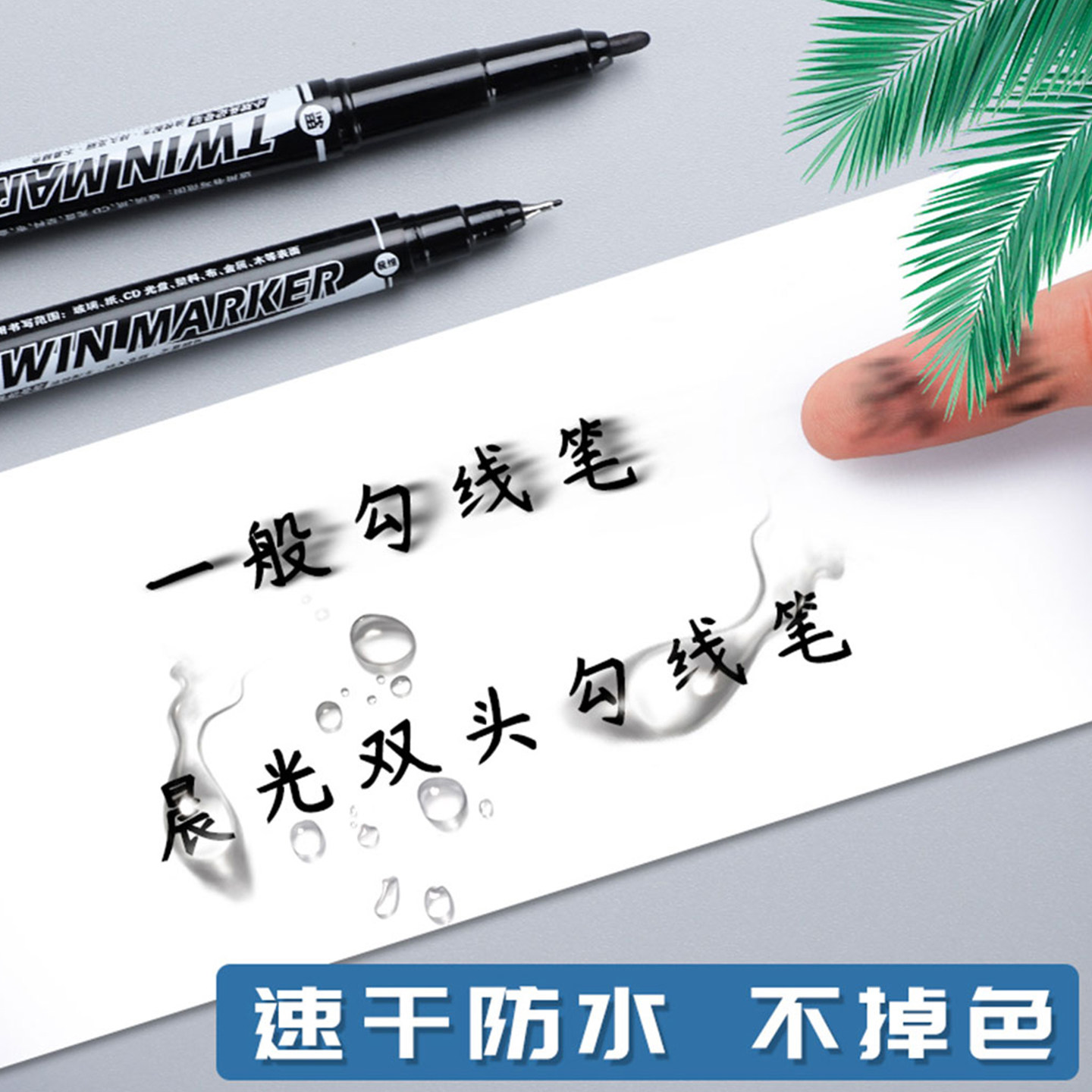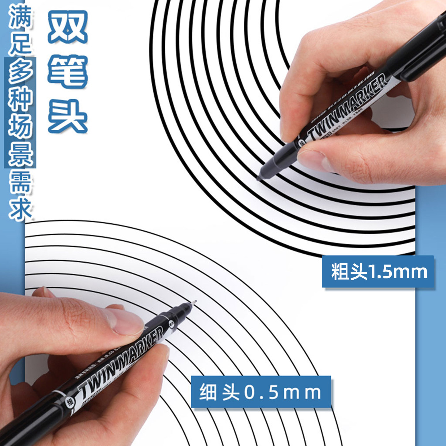 晨光记号笔勾线笔美术专用小学生绘画黑色油性粗细两头双头儿童幼儿园马克笔描边速干防水防油不掉色工地划线