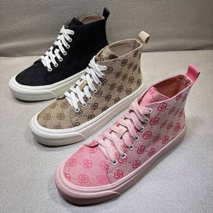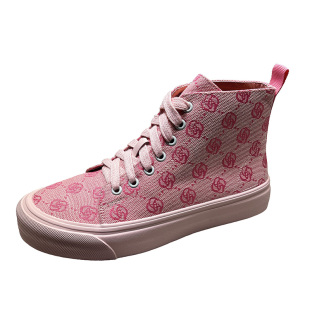 加绒短靴系带马丁靴女潮 韩版 欧货粉色帆布高帮鞋 女英伦风2025新款