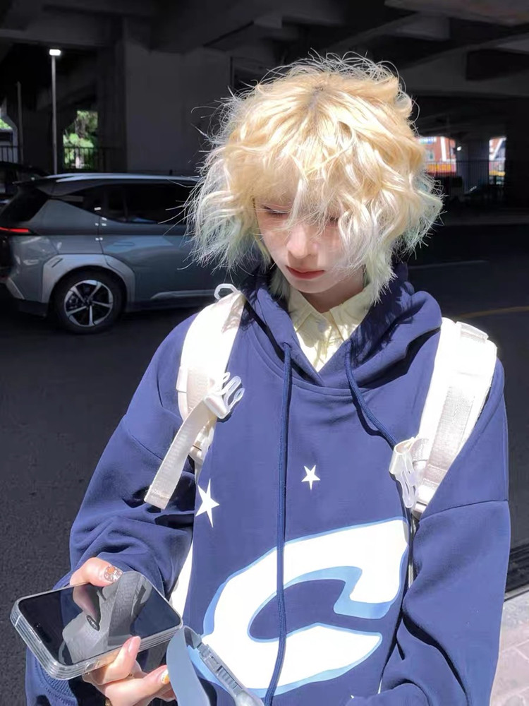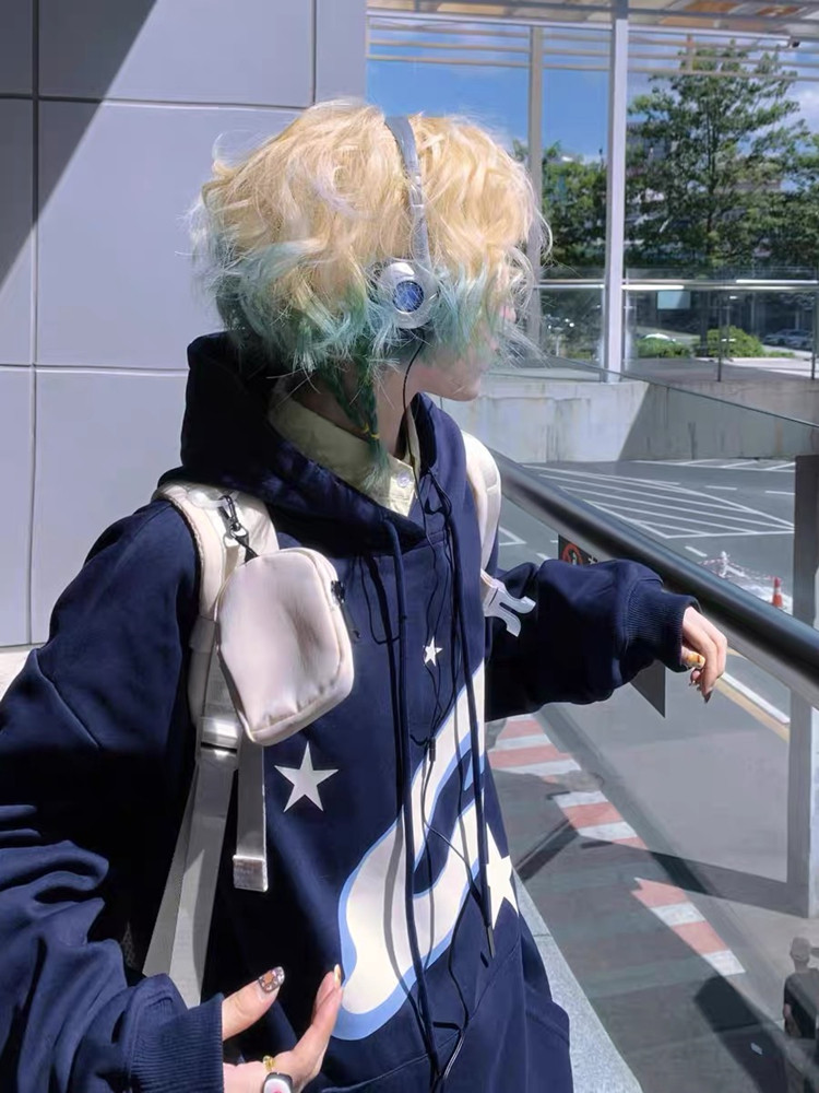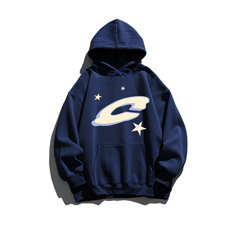 100%纯棉国潮hiphop星星字母连帽卫衣女秋冬慵懒bf风小众情侣外套