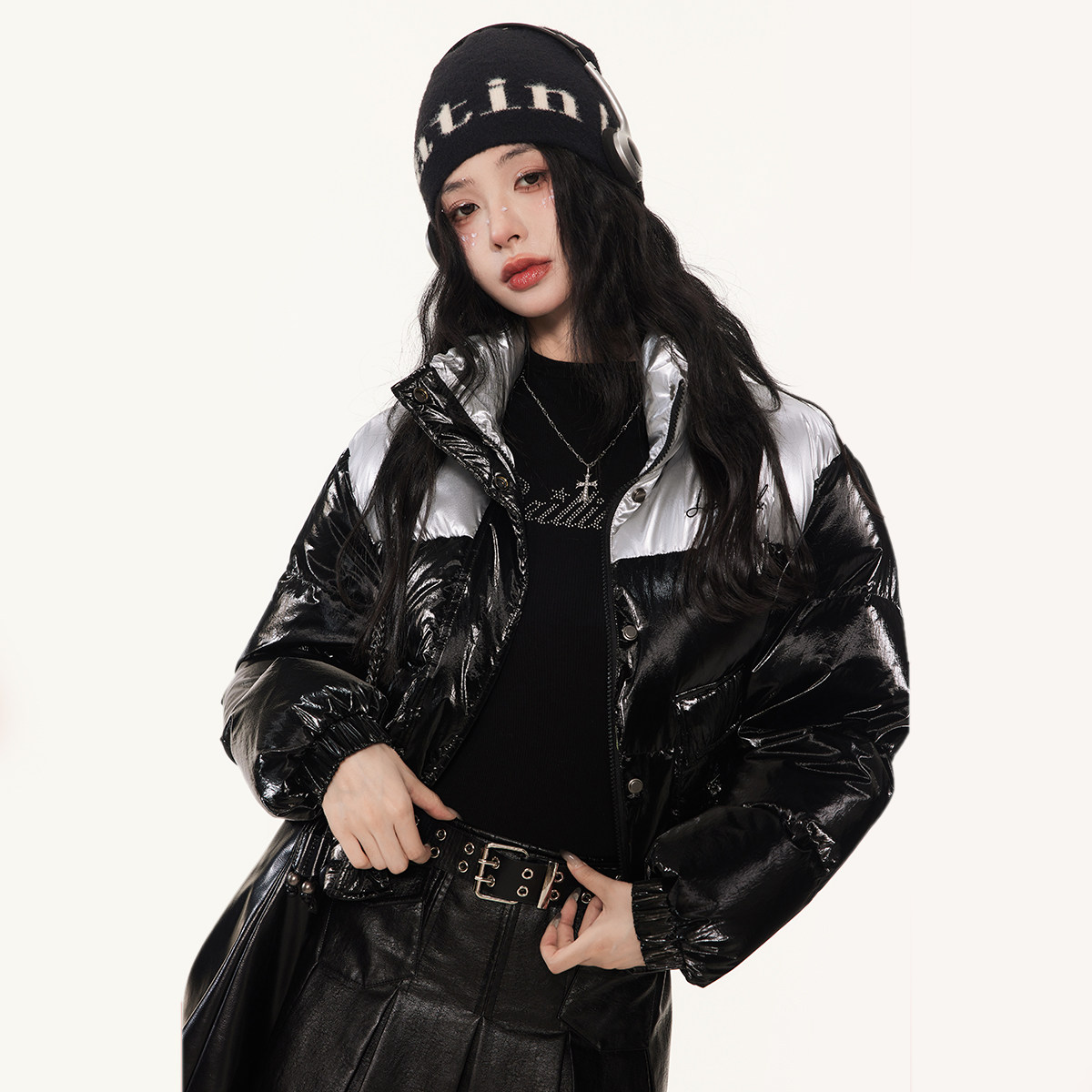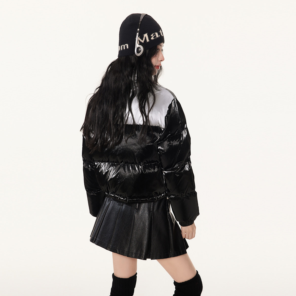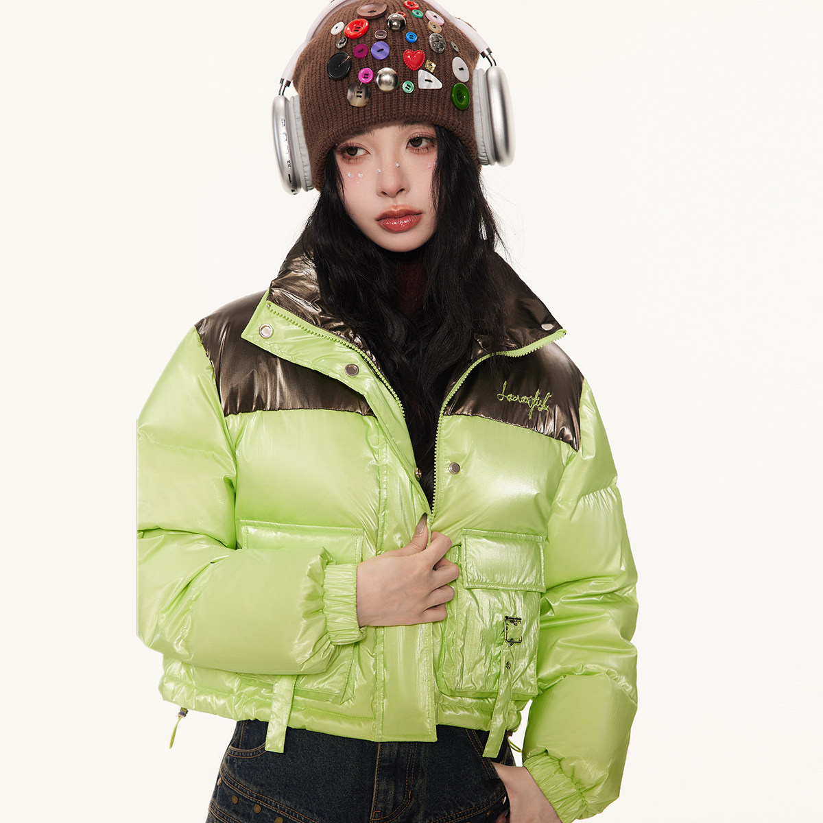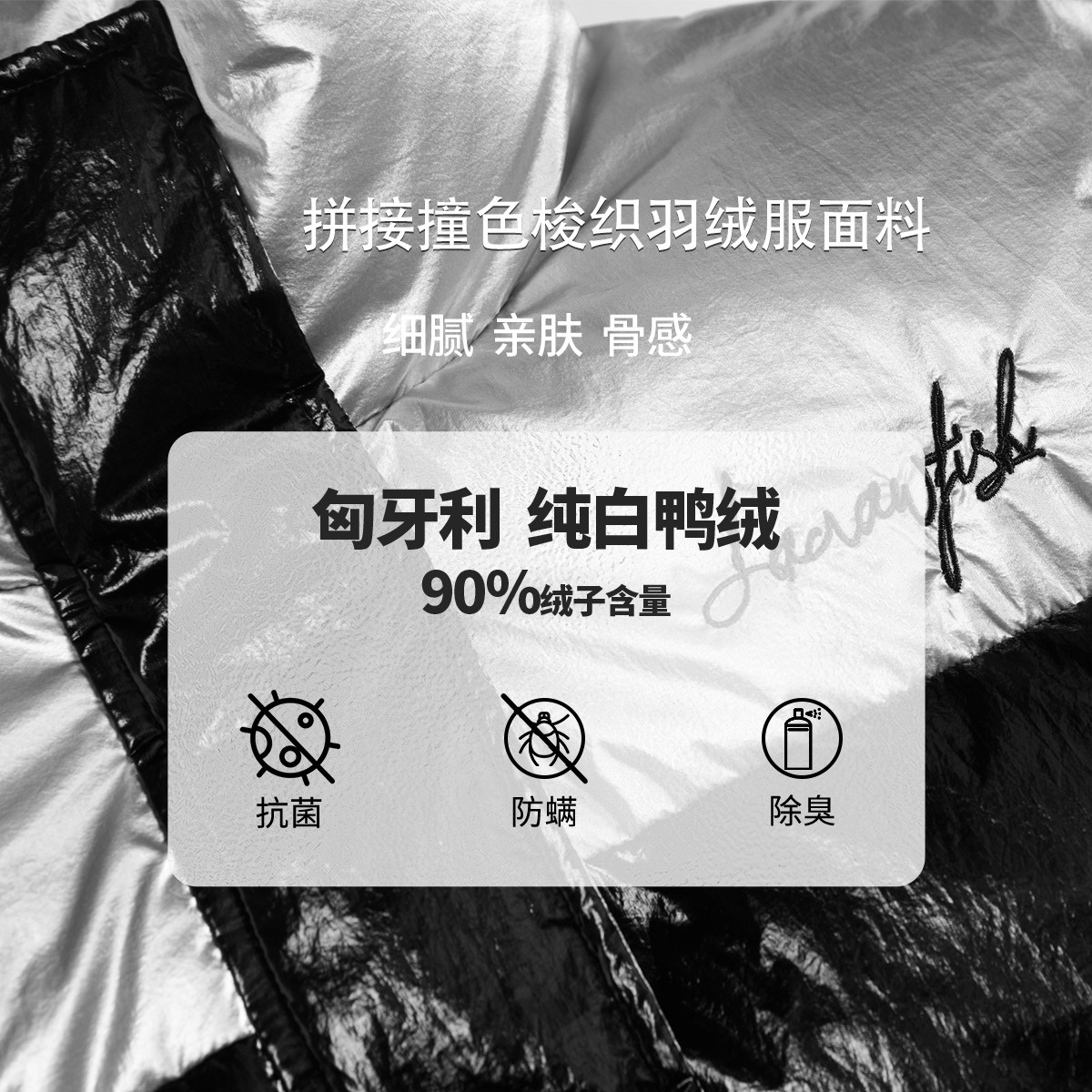 厚外套 女款 CRAWFISH辣妹酷飒亮面撞色拼接90白鸭绒羽绒服短款