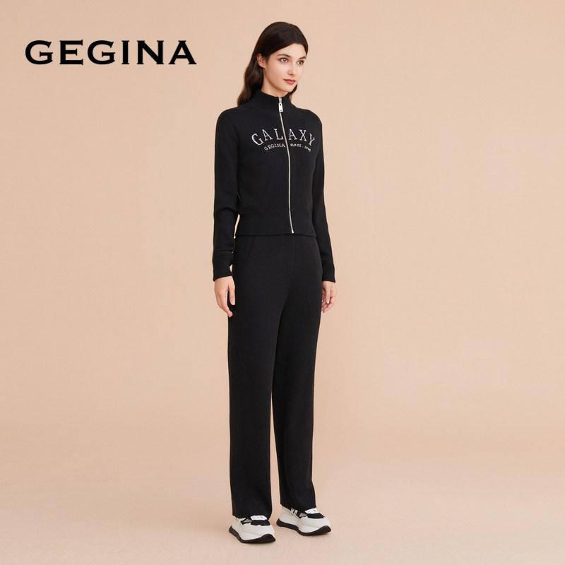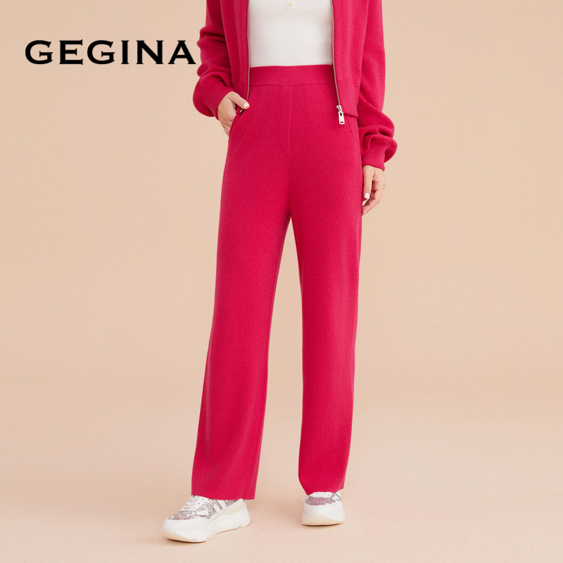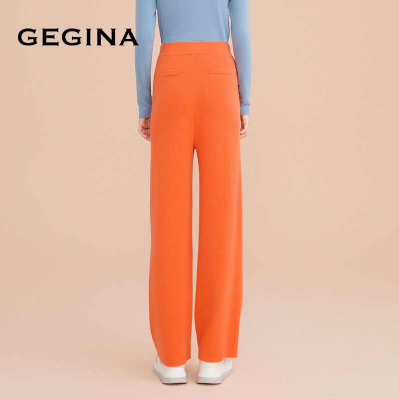 商场同款 GEGINA吉吉娜新款 绵羊毛混纺直筒松紧腰女士休闲阔腿长裤