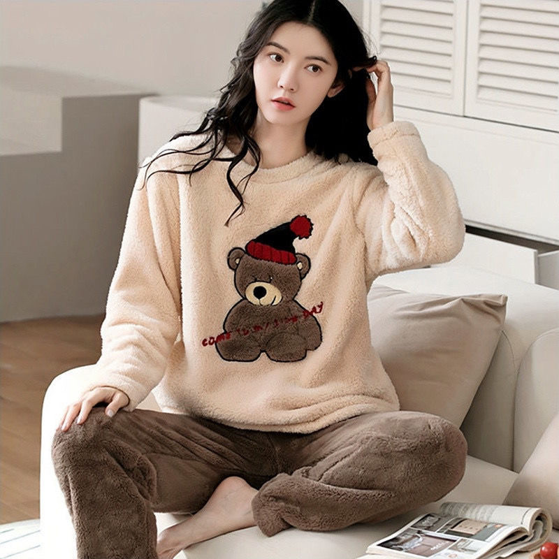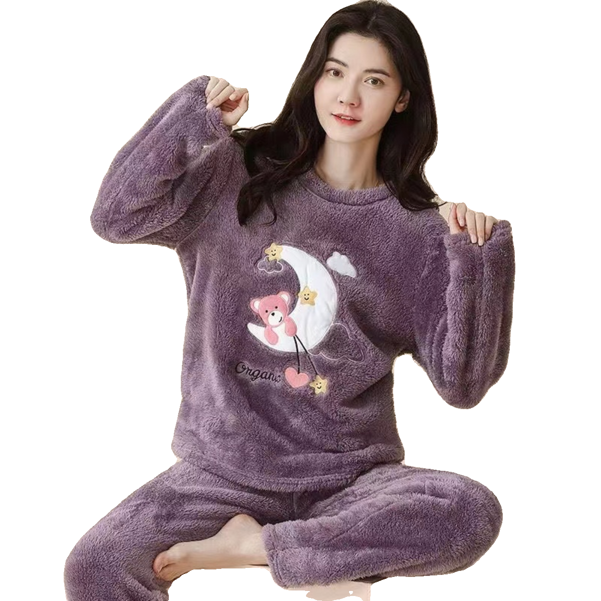 冬季 法兰绒睡衣女圆领保暖可外出ins网红珊瑚舒适月子套头家居服