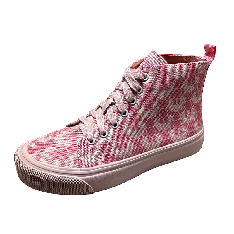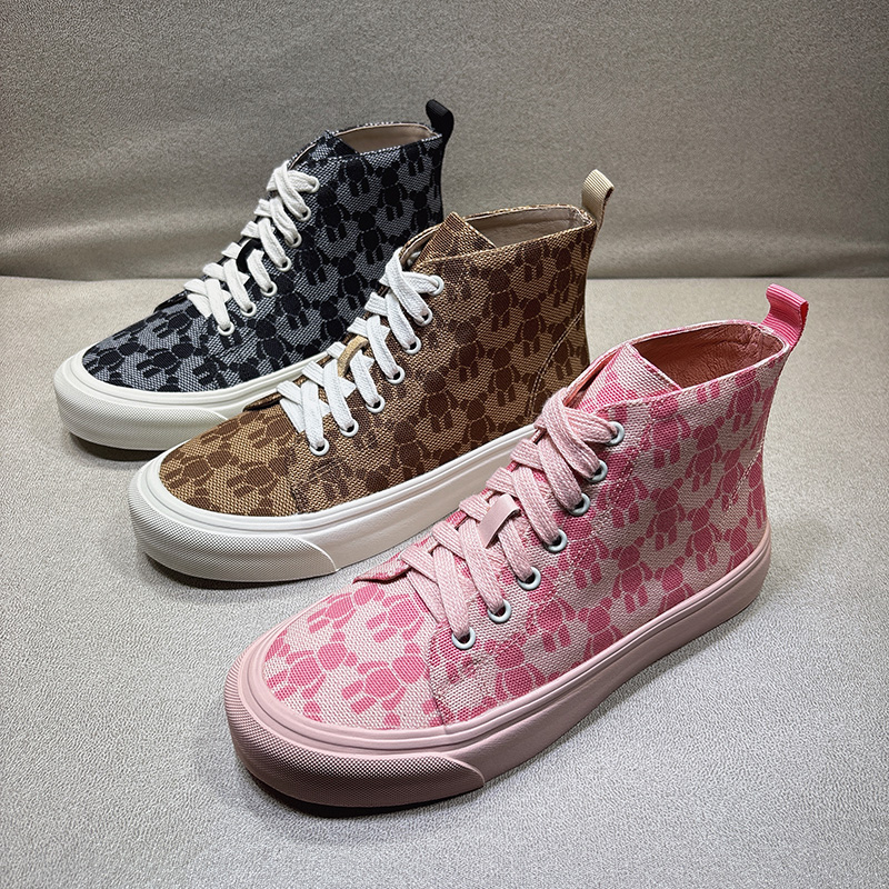休闲帆布系带马丁短靴 加绒韩版 欧货粉色高帮鞋 子女潮英伦2025新款