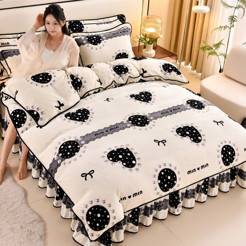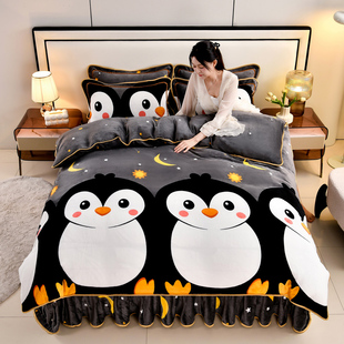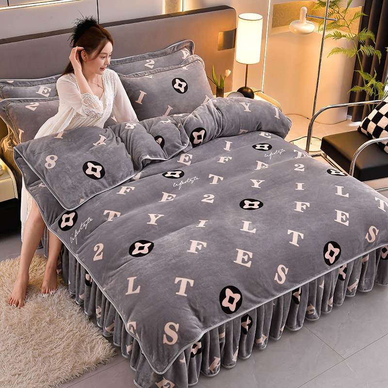 加厚保暖金貂绒被套床上用品法兰绒床单裙式 新款 牛奶绒四件套冬季