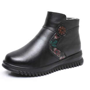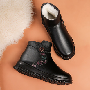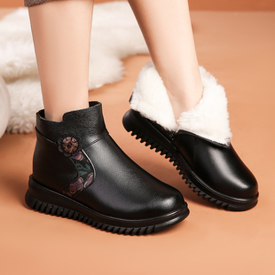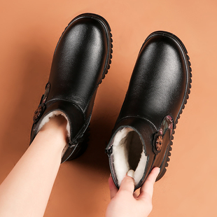 软底防滑奶奶短靴大码 加绒保暖真皮羊毛中老年女鞋 妈妈棉鞋 冬季