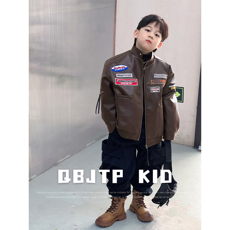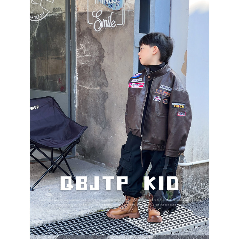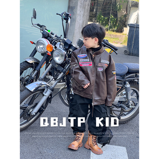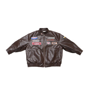 Hualun复古机车软皮衣男外套高街痞帅大学生高级感潮流飞行员夹克