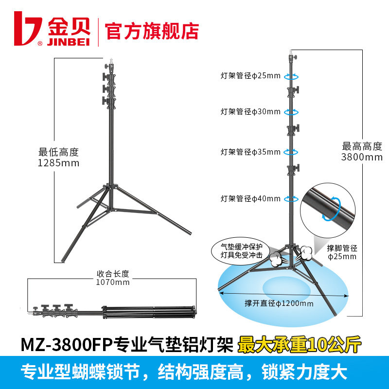 3800FP 3000FP 4800FP专业气垫铝灯架拍照摄影不锈钢加粗加固大承重支架三脚架带气垫缓冲 2400FP 金贝MZ