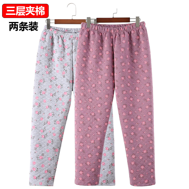 高腰加厚秋裤 女士纯棉加肥加大码 敞口家居裤 老太太三层夹棉保暖裤