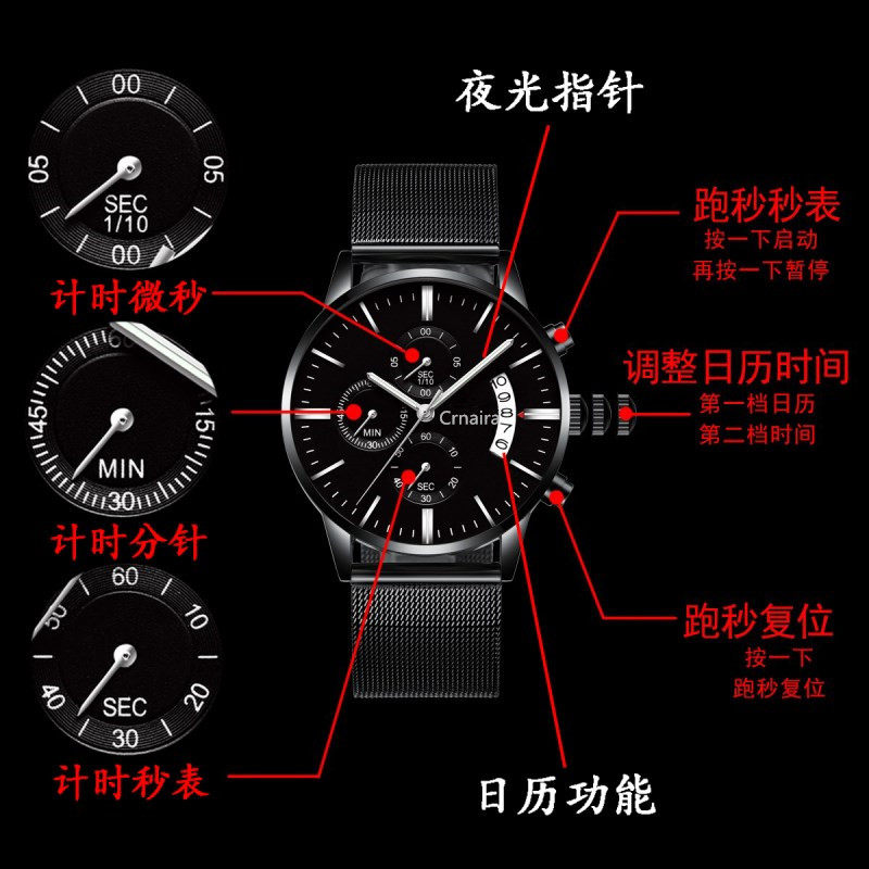 名牌计时三眼石英腕表潮流休闲运动男表多功能 手表男款 正品 男士
