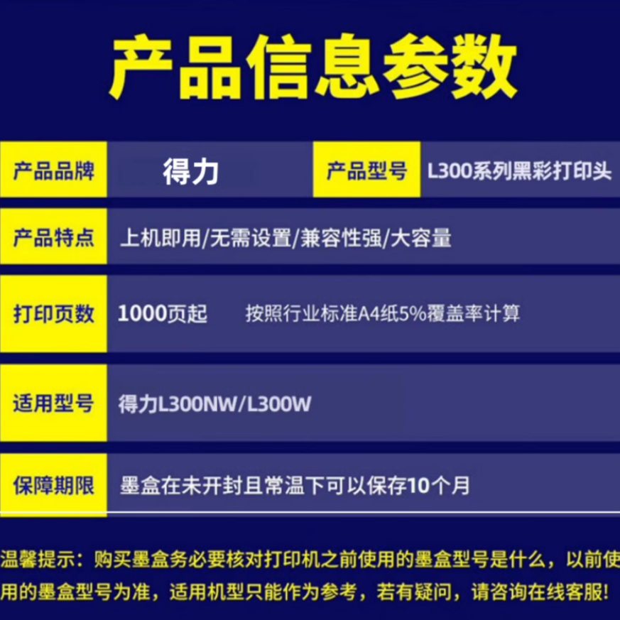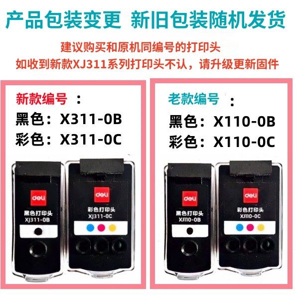 墨盒 得力原装 L300NW打印头 0B黑色打印头适用得力L300W打印头喷头 0C彩色喷头XJ311打印头 XJ110