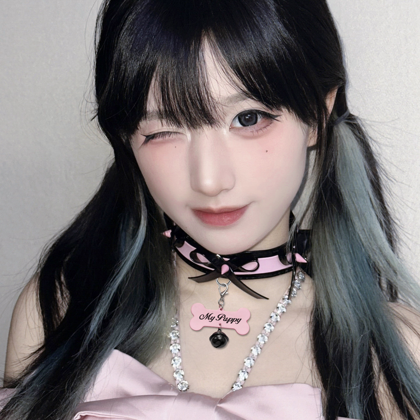 小狗骨头项圈女情调小狗牵引绳choker颈链皮革puppy小众设计项链