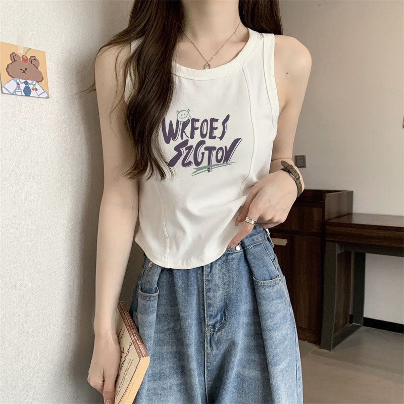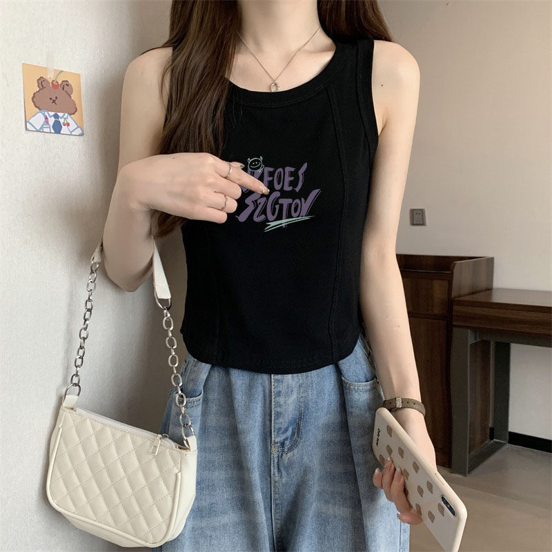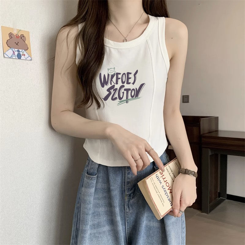 无袖 甜酷盐系印花内搭短款 鱼骨上衣 外穿美式 工字背心小吊带女夏季
