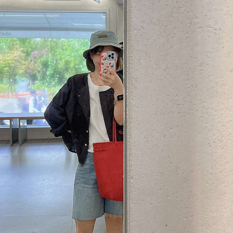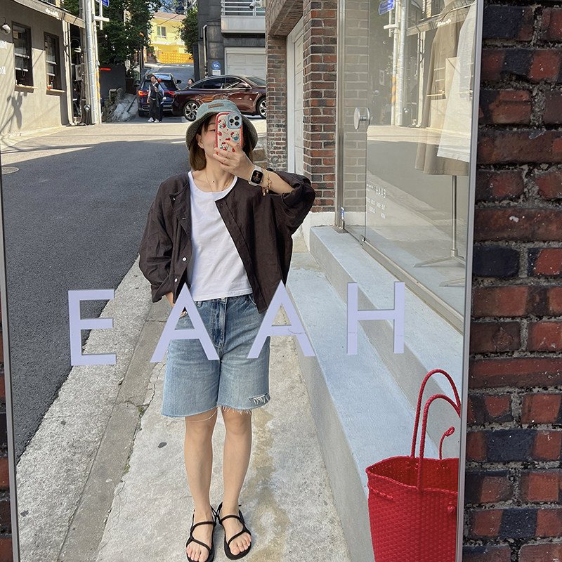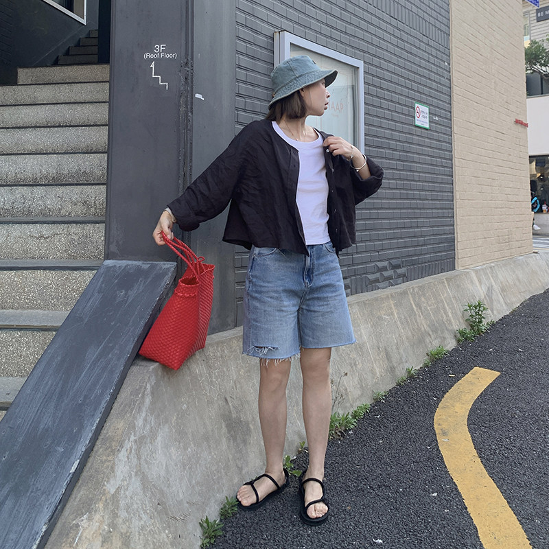 休闲裤 女夏宽松短裤 时髦洋气~浅蓝破洞毛边五分牛仔中裤 333sss