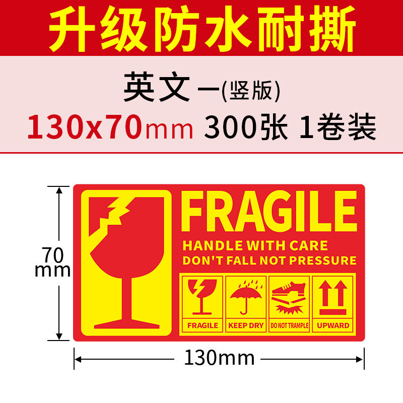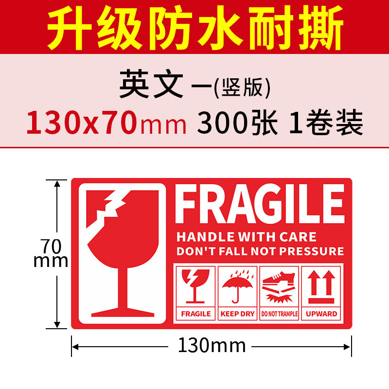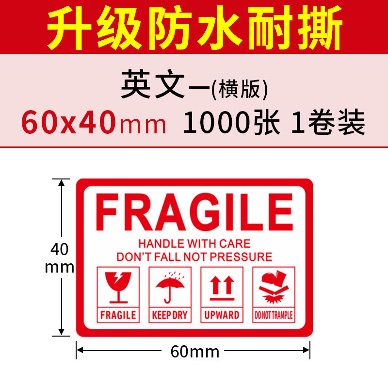 易碎品标签贴纸英文fragile跨境国际物流小心轻放不干胶标识