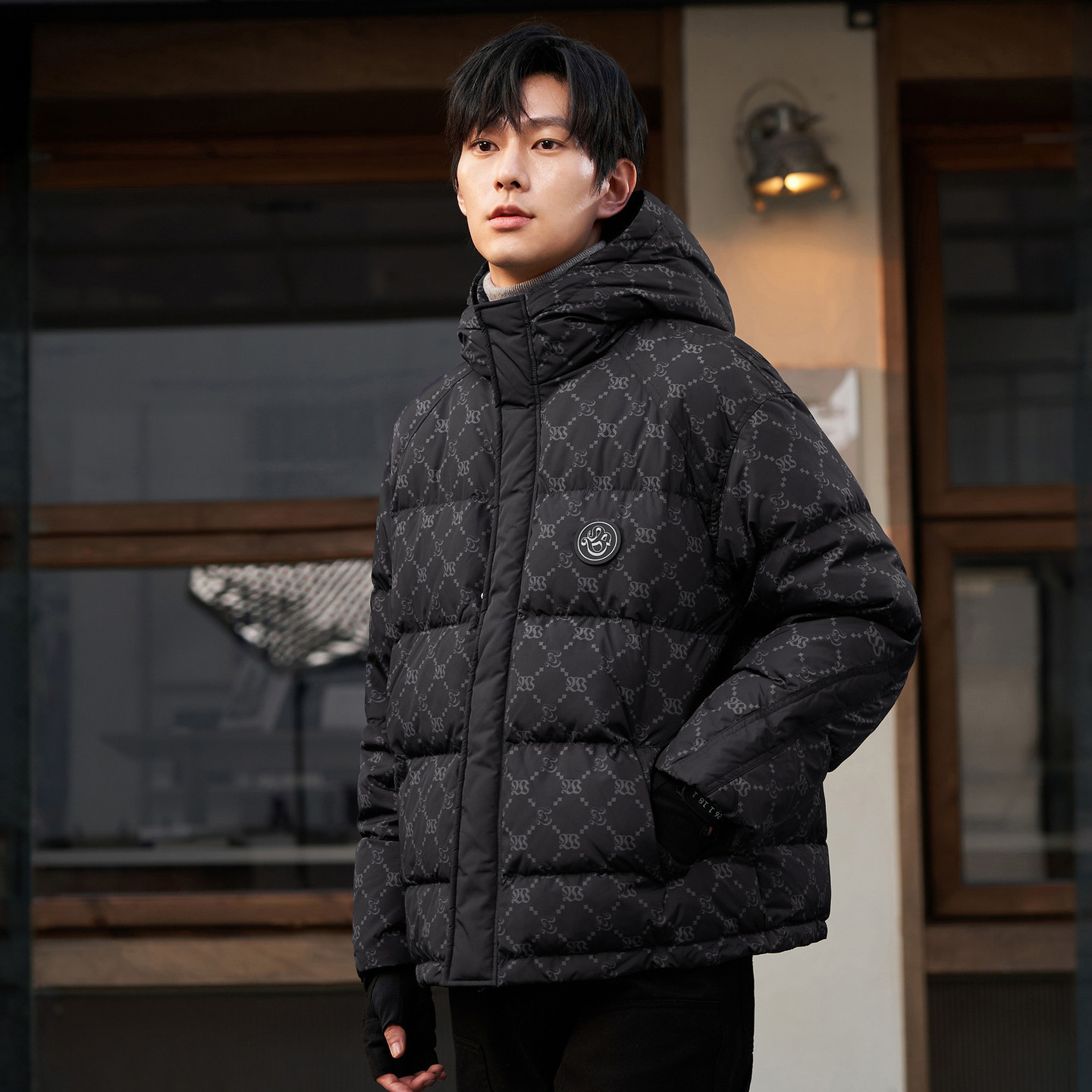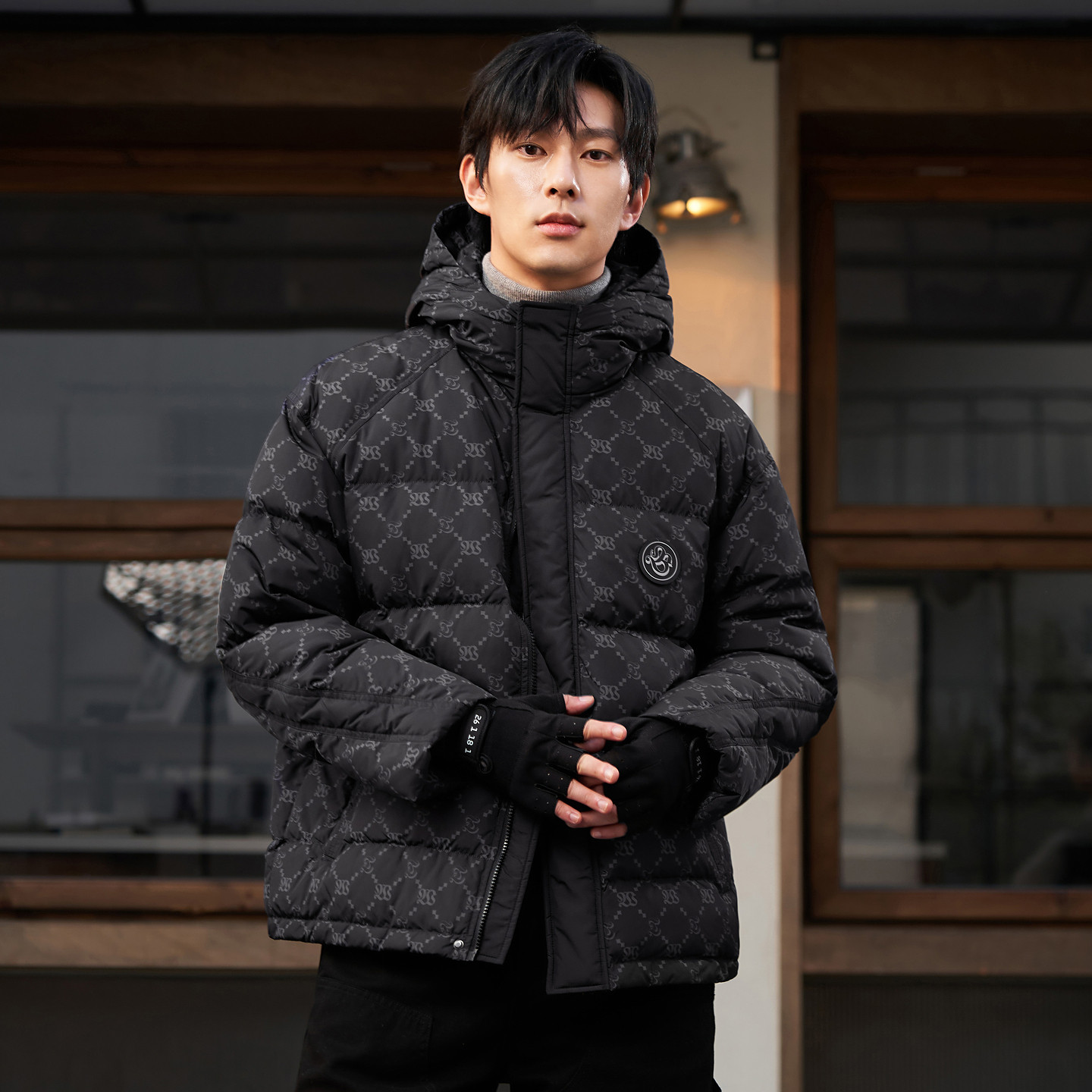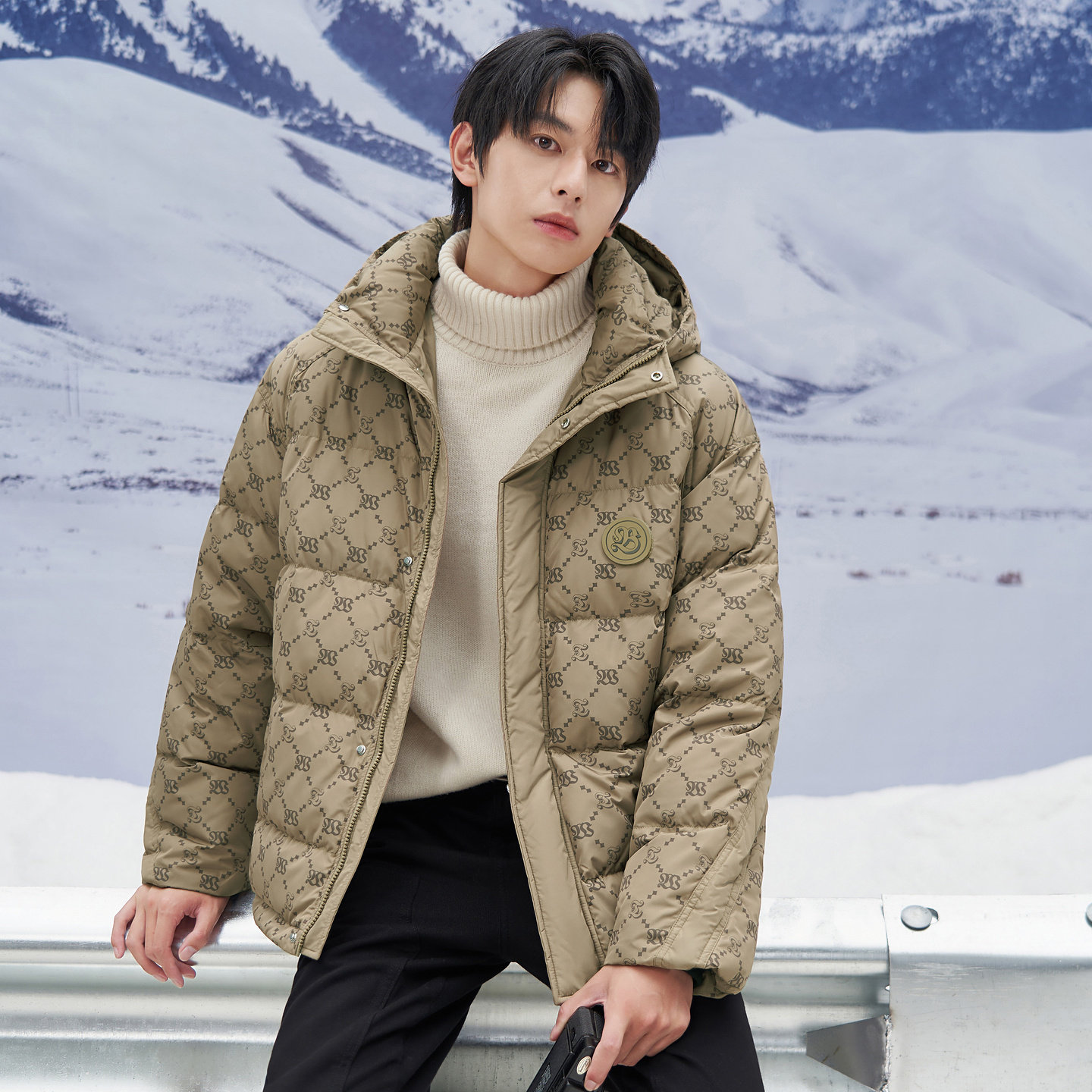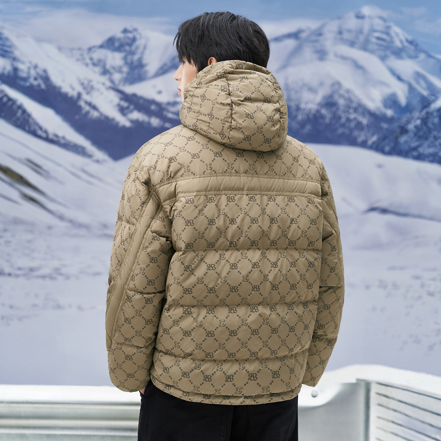 卡其色老花满印休闲连帽羽绒服男 新款 gxgjeans男装 2024年冬季