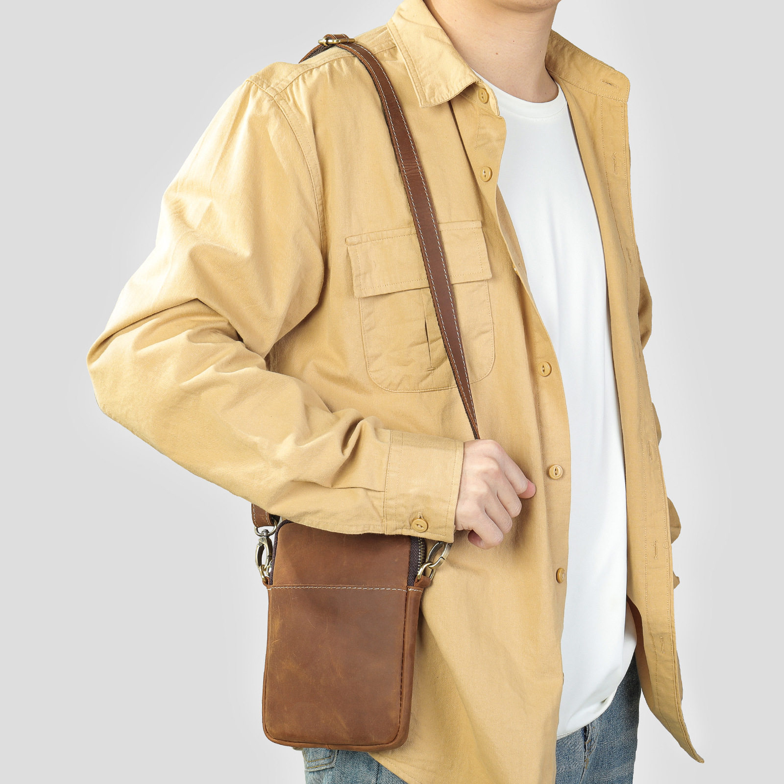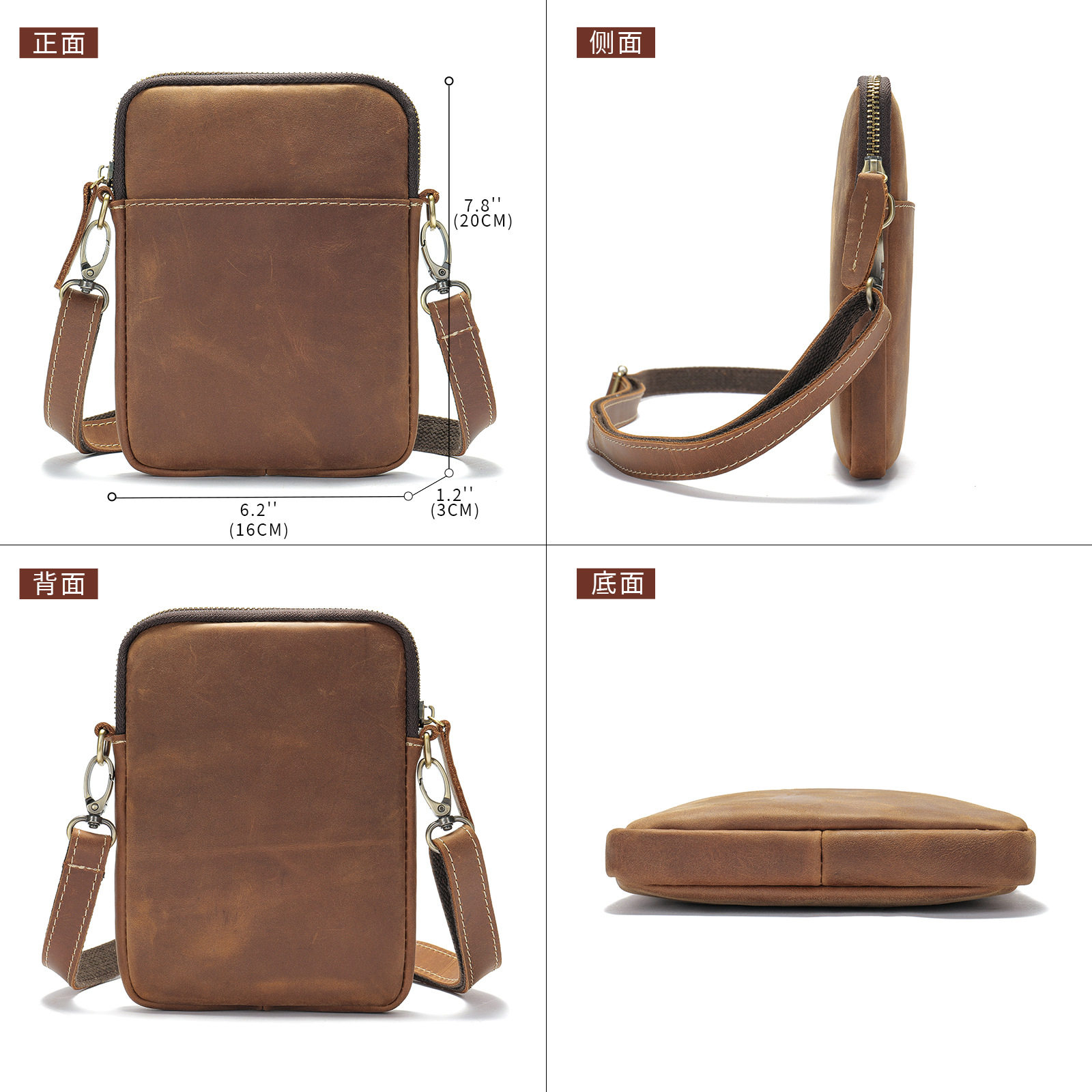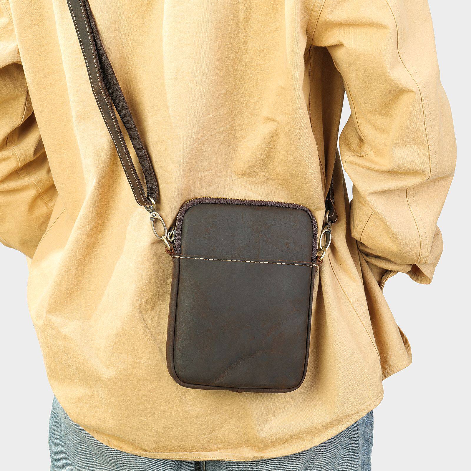 美式 潮流通勤斜挎包 复古风头层牛皮质感单肩包斜挎小包真皮男式