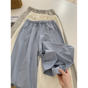 阔腿凉凉裤 夏季 女工装 系绳百搭高腰宽松显瘦垂感休闲直筒裤 薄款