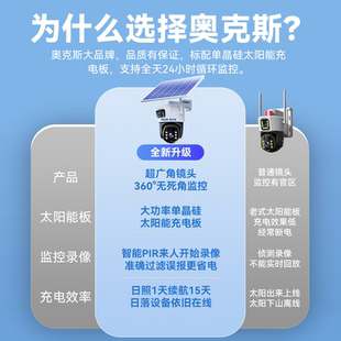 奥克斯太阳能摄像头监控器手机远程户外360度无死角无网络4G夜视