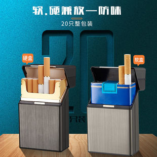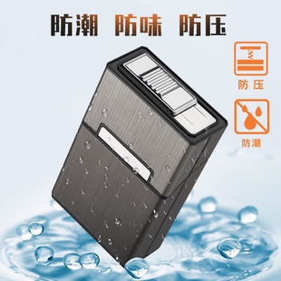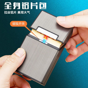 20支装 铝合金烟盒充电打火机一体便携男创意防风软硬翻盖高档抗压