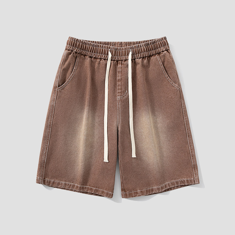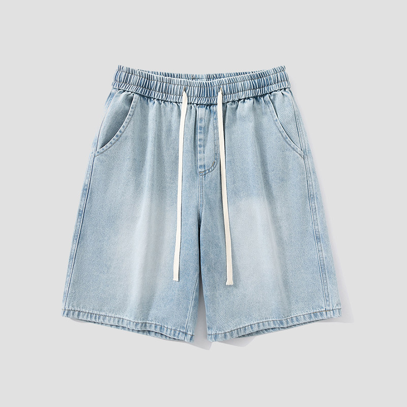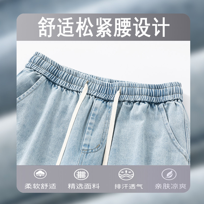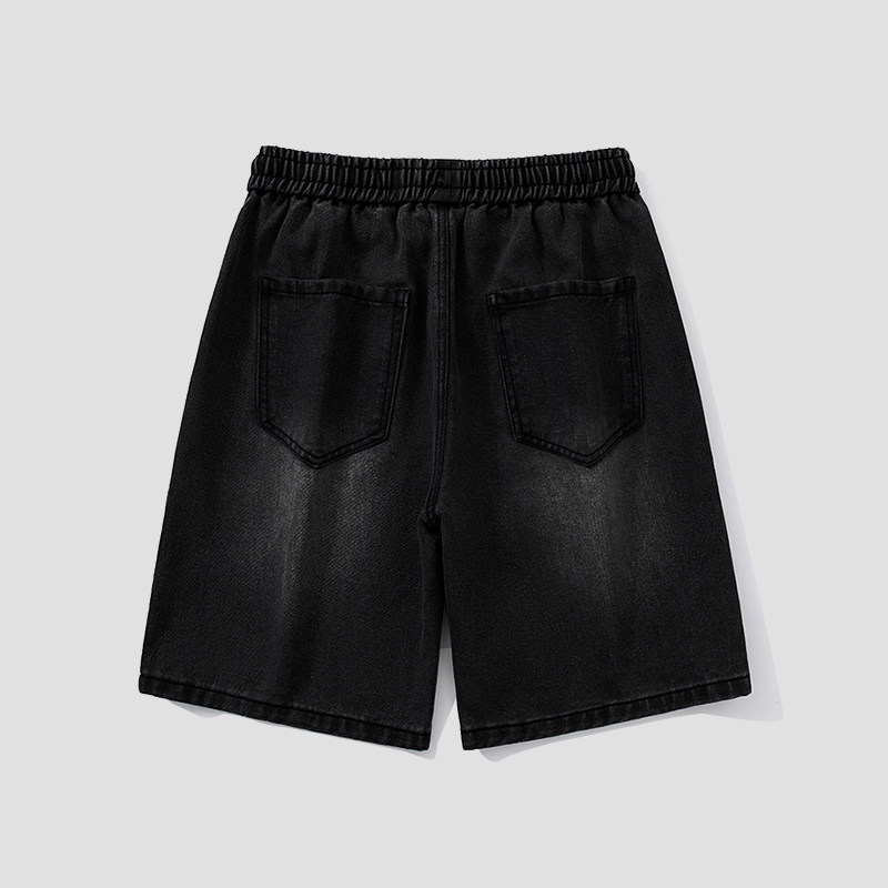 潮流宽松水洗做旧休闲百搭运动五分裤 薄款 子潮 男夏季 黑色牛仔短裤