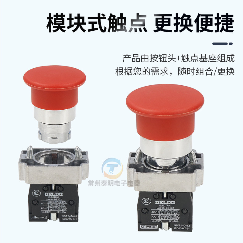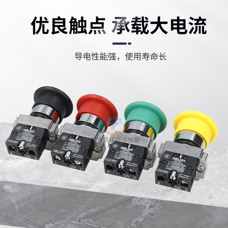 德力西LAY5 XB2常闭大头 BC31常开42蘑菇头按钮开关22mm自复位NP2