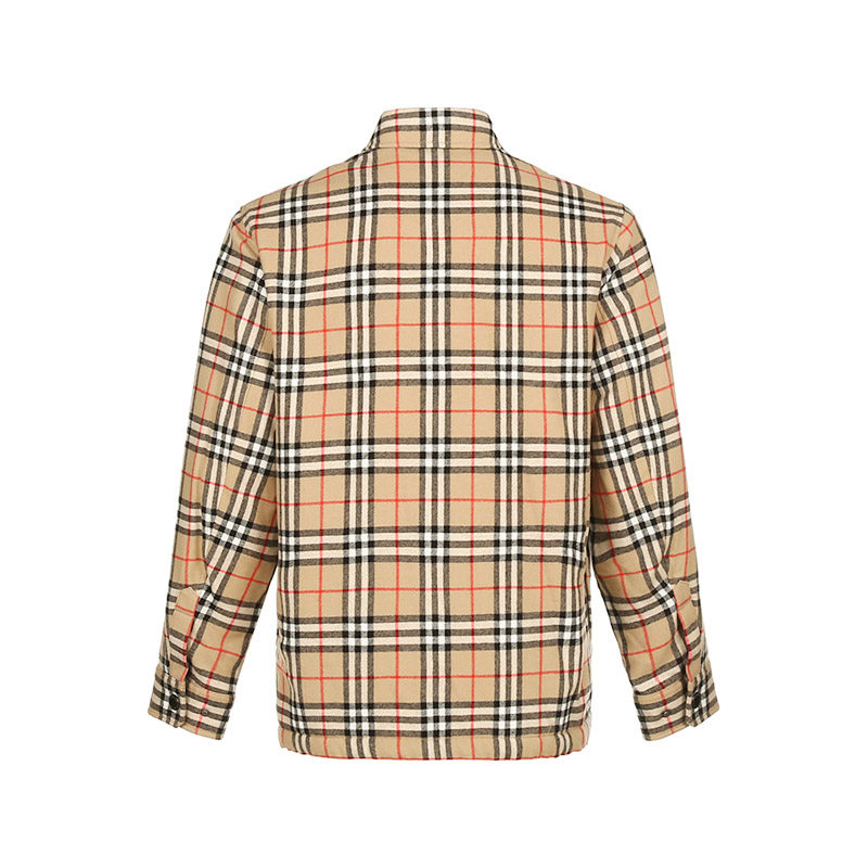 复古菱形格夹棉外套200斤 女装 胖mm冬季 巴恩翻领棉服木子理想大码