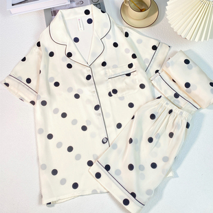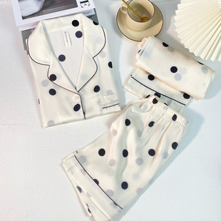 三件套送闺蜜妈妈礼盒装 猫人带胸垫真丝睡衣女款 长裤 冰丝短袖 夏季