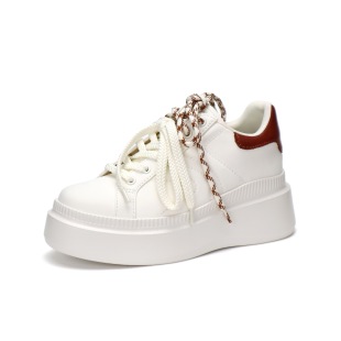 女鞋 系带增高厚底牛皮休闲板鞋 百搭小白鞋 KISSCAT接吻猫2025新款