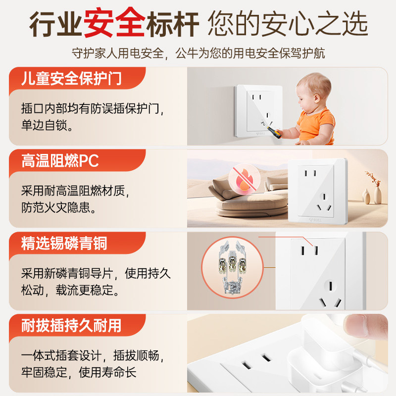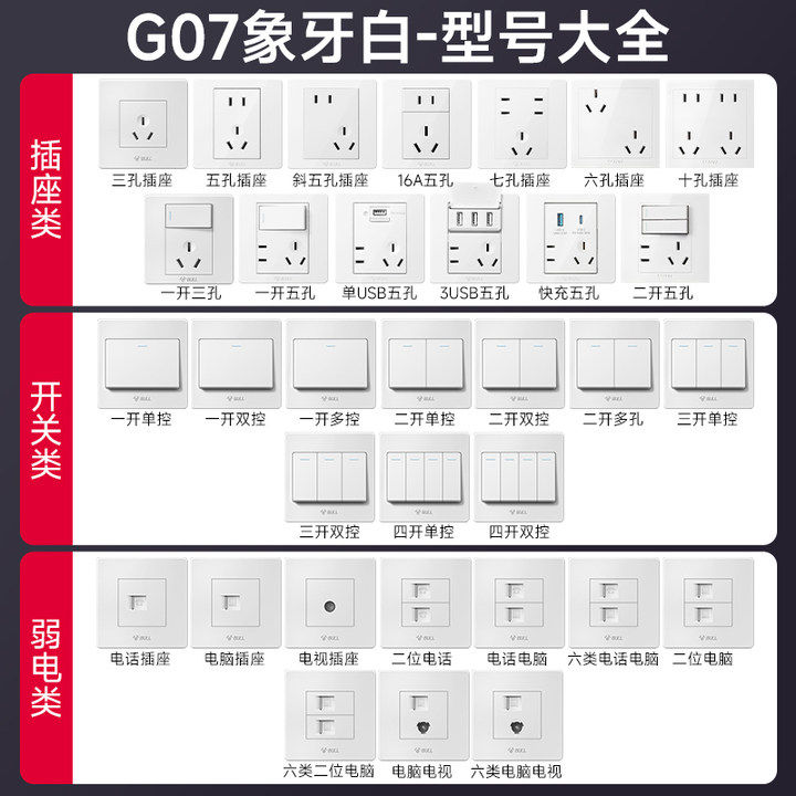 公牛开关插座面板官方旗舰店正品 g07象牙白 家用五孔墙壁墙上暗装