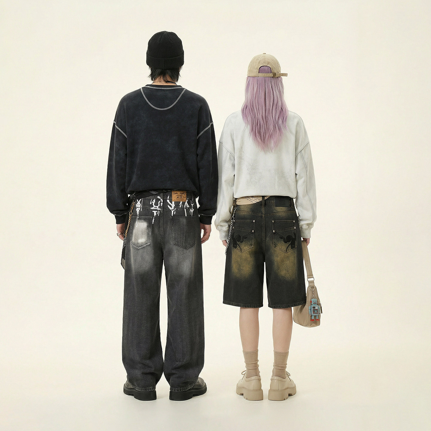 设计感套头衫 INXXAPYD T恤男情侣装 废土风长袖 春秋上衣女 美式