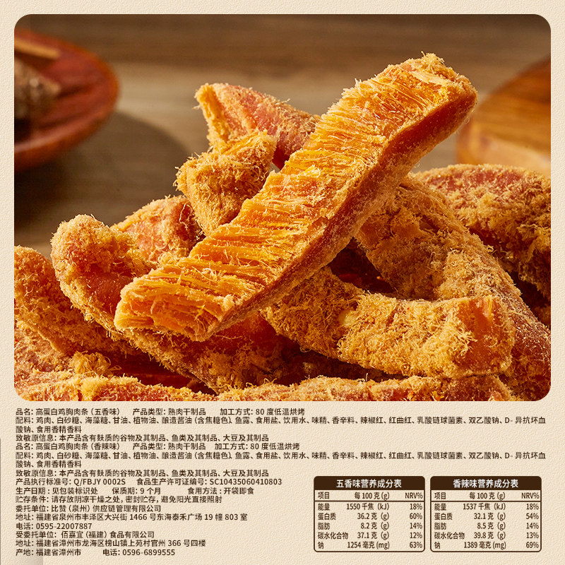 比比赞高蛋白鸡胸肉条五香味鸡肉干休闲零食解馋饱腹夜宵充饥食品