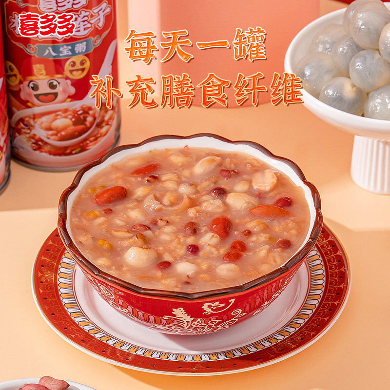 喜多多桂圆莲子八宝粥罐头速食粥280g 4罐速食营养早餐粥即食