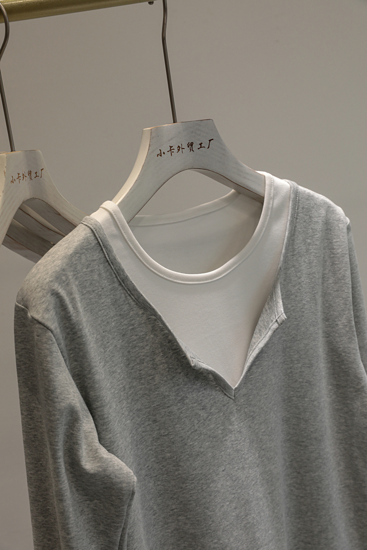 假两件打底衫 T恤上衣韩版 女2024早春新款 显瘦长袖 修身 性价比王炸