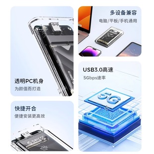 Orico奥睿科透明固态硬盘盒mSATA转Type C笔记本电脑SSD移动usb盒