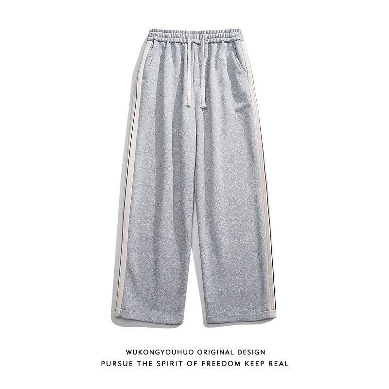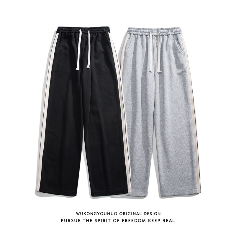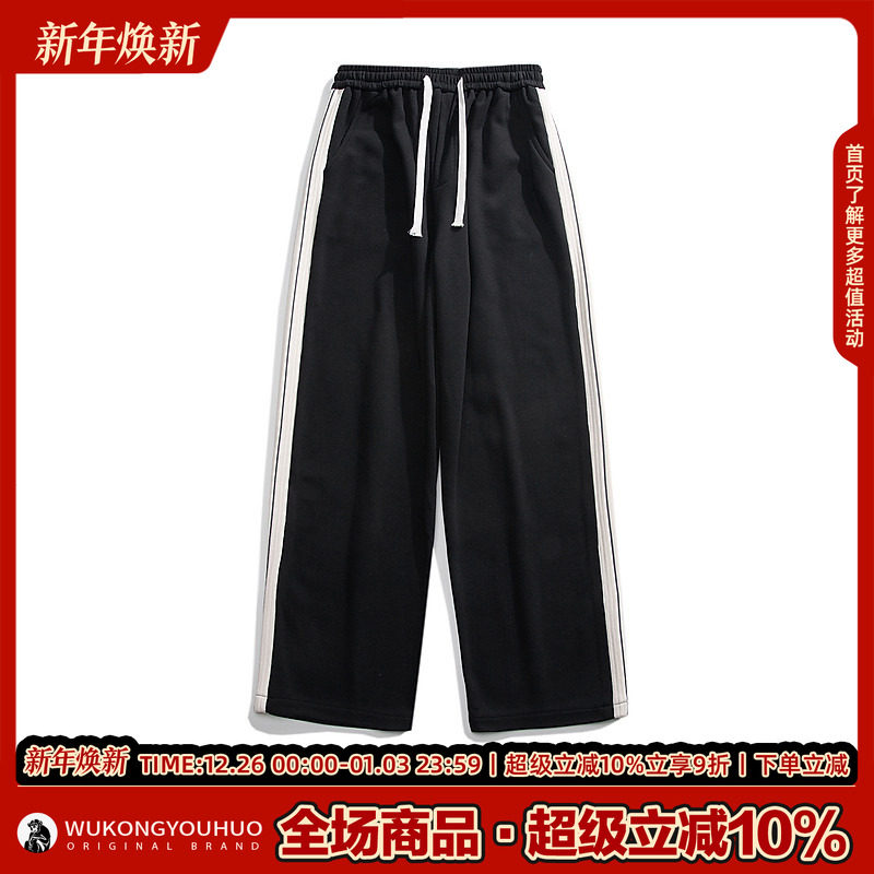 悟空有货复古侧面织带直筒运动裤 男潮牌街头宽松阔腿休闲百搭卫裤