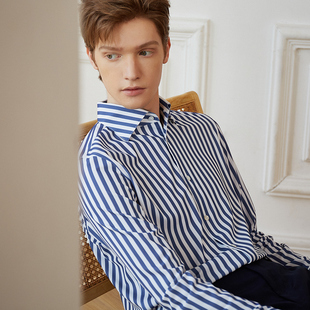 全棉彩色条纹宽松长袖 衬衫 衬衣男 阿美咔叽日系复古青年工装 日式