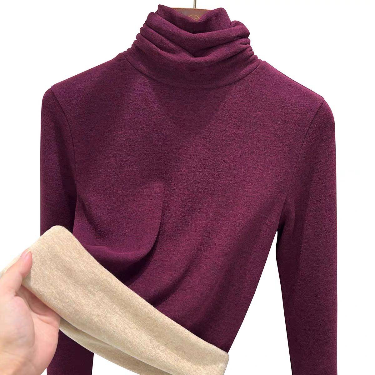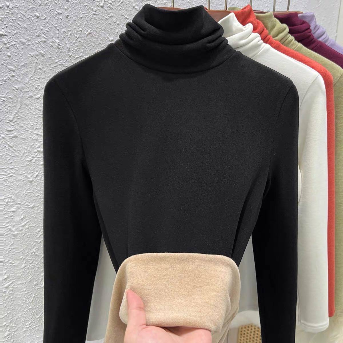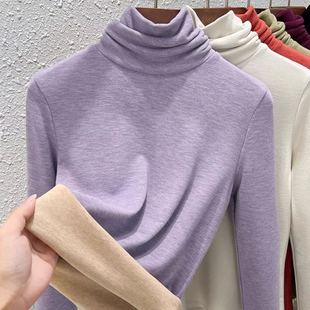 秋冬内搭加绒粉色高领上衣冬季 桑蚕丝羊毛堆堆领打底衫 女2025新款