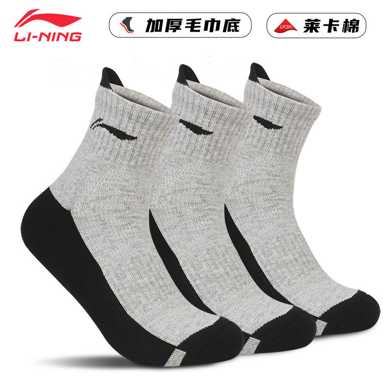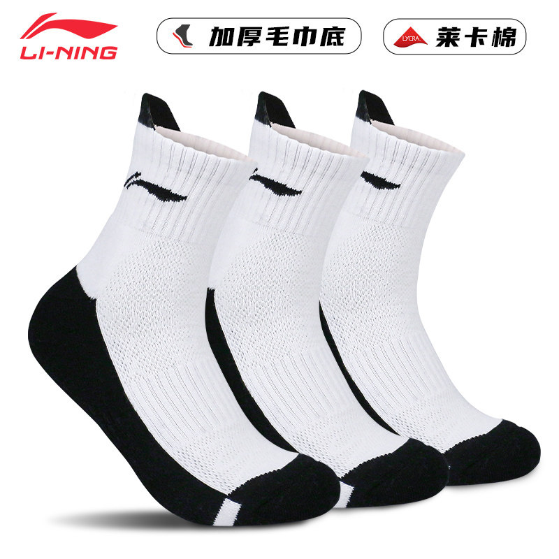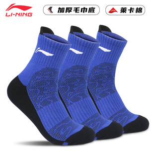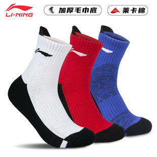 李宁运动袜加厚毛巾底羽毛球篮球袜子男跑步精英专业减震防滑中筒