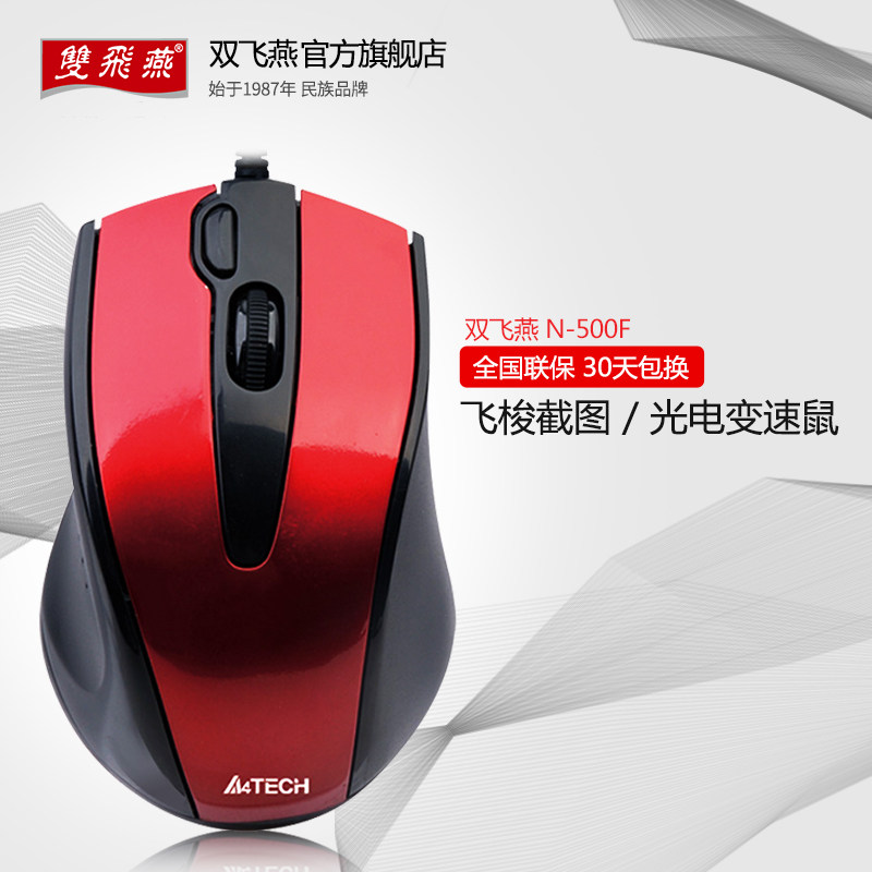 双飞燕N USB电脑家用无声静音 500F有线鼠标游戏办公笔记本台式