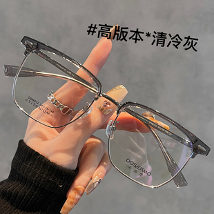 超轻钛架眉线黑色半框眼镜近视可配近视男款 斯文理工男眼睛镜框架