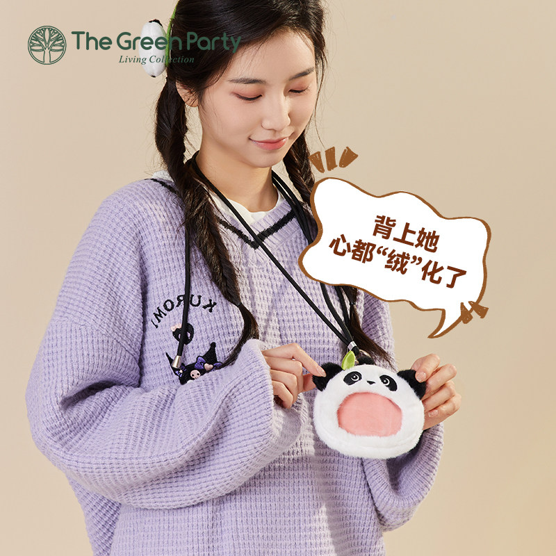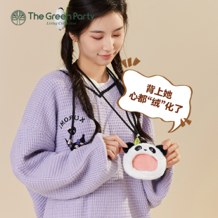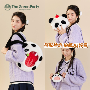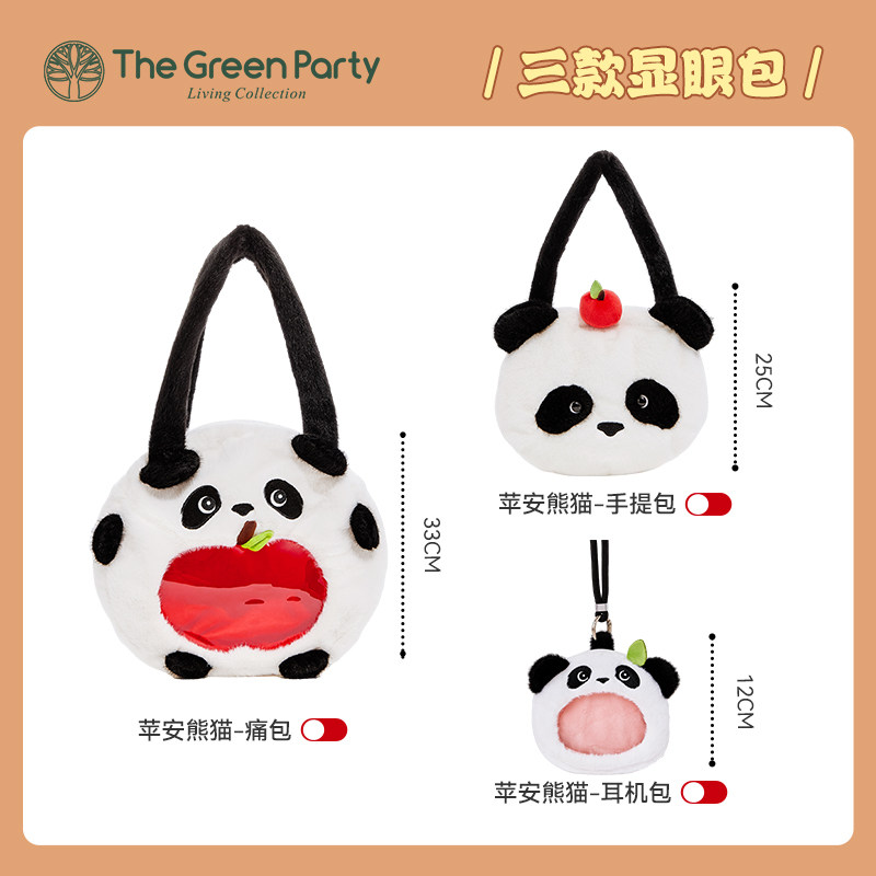 TheGreenParty苹果熊猫包包女生呆萌可爱毛绒手提包送礼物单肩包