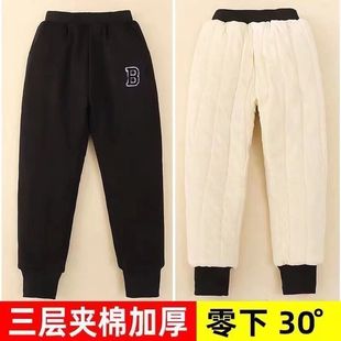 子儿童保暖三层加棉特厚一条过冬 加厚外穿加绒裤 男女童棉裤 冬季