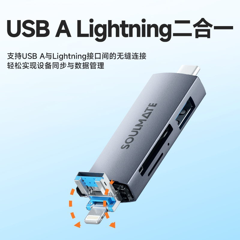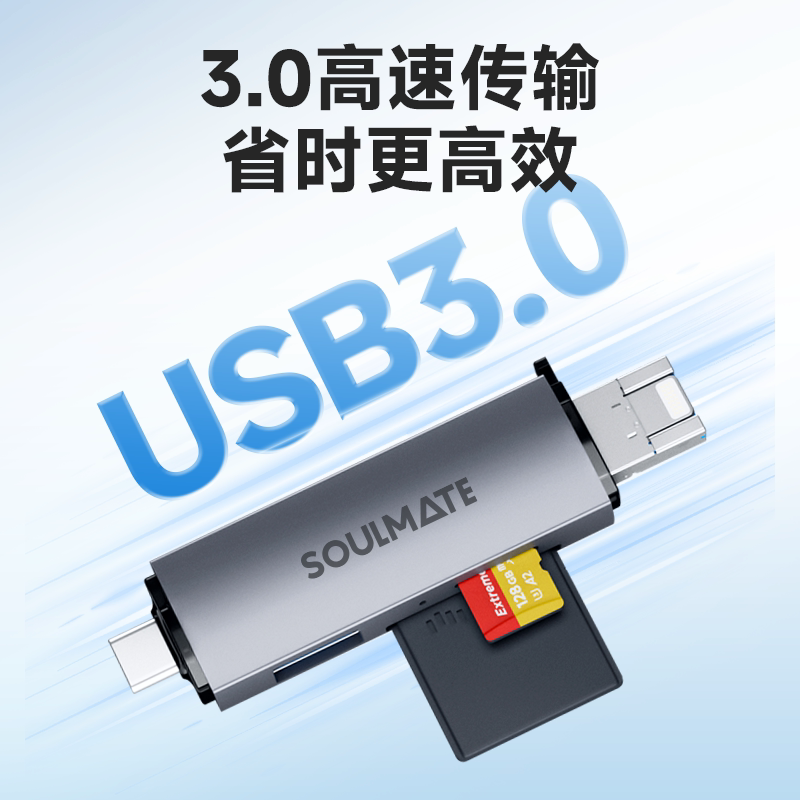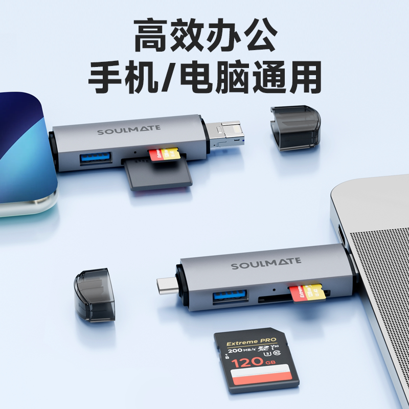 数魅D12A读卡器usb3.0多功能六合一sd内存卡ccd存储转换tf安卓typec电脑U盘两用otg车载通用适用于相机内存卡