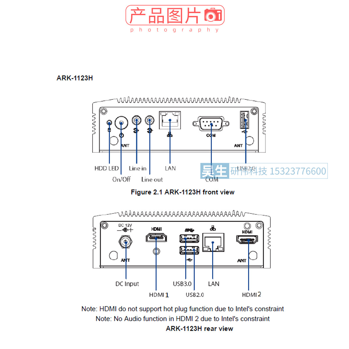 U0A1E U0A3 U0A4 研华 无风扇工控机 1123H 迷你嵌入式 J1900 ARK