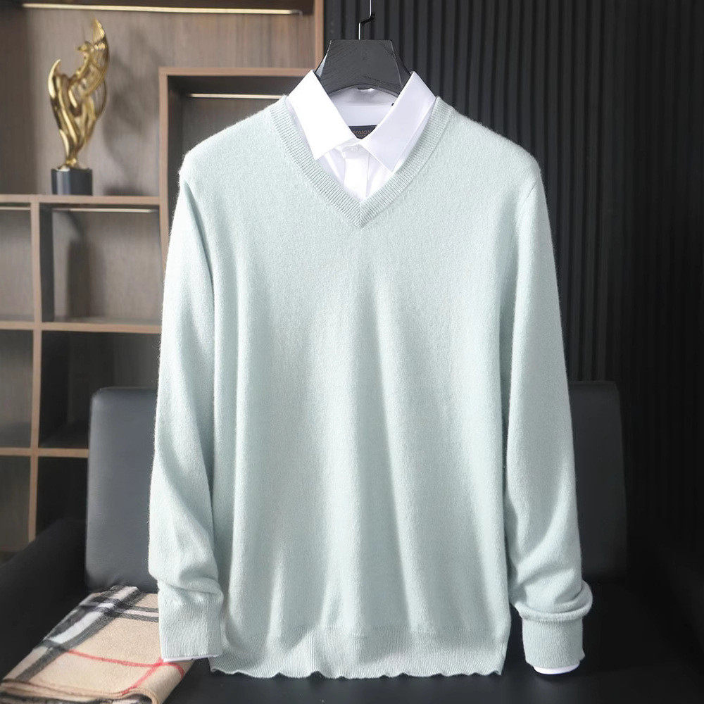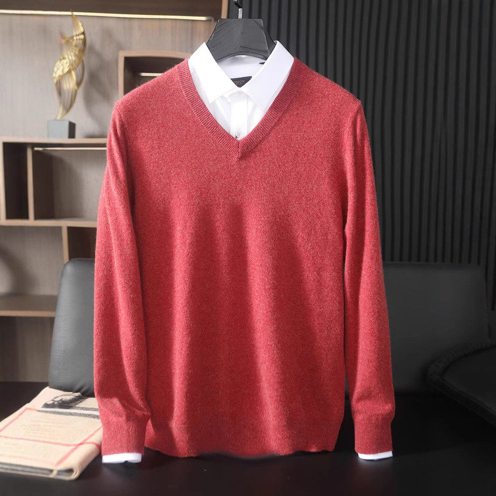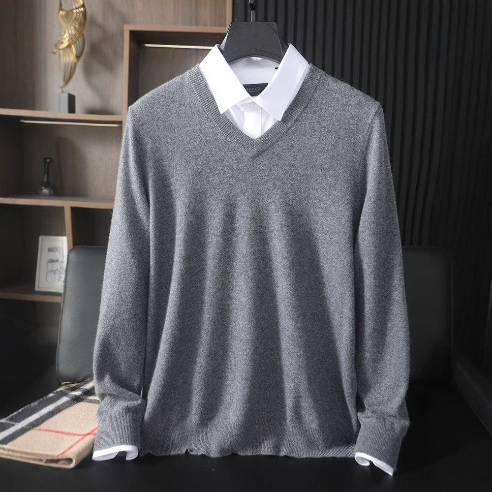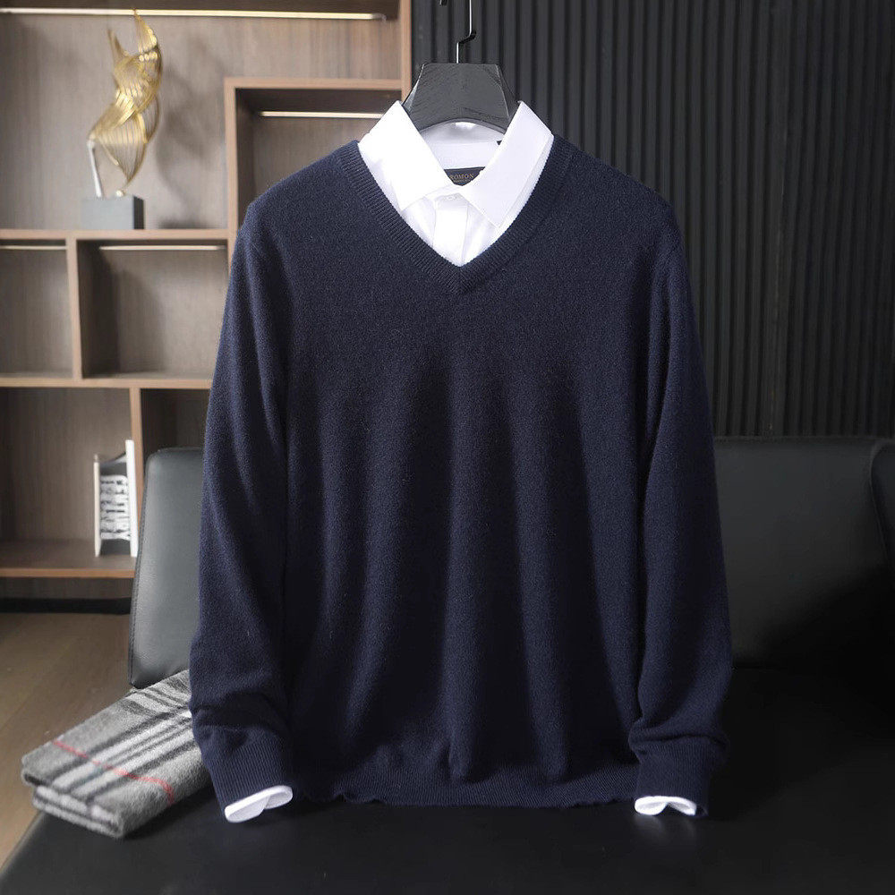 男100纯山羊绒v领毛衣商务休闲鸡心领羊毛针织打底衫 秋冬款 羊绒衫