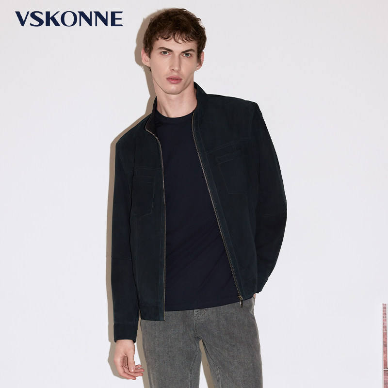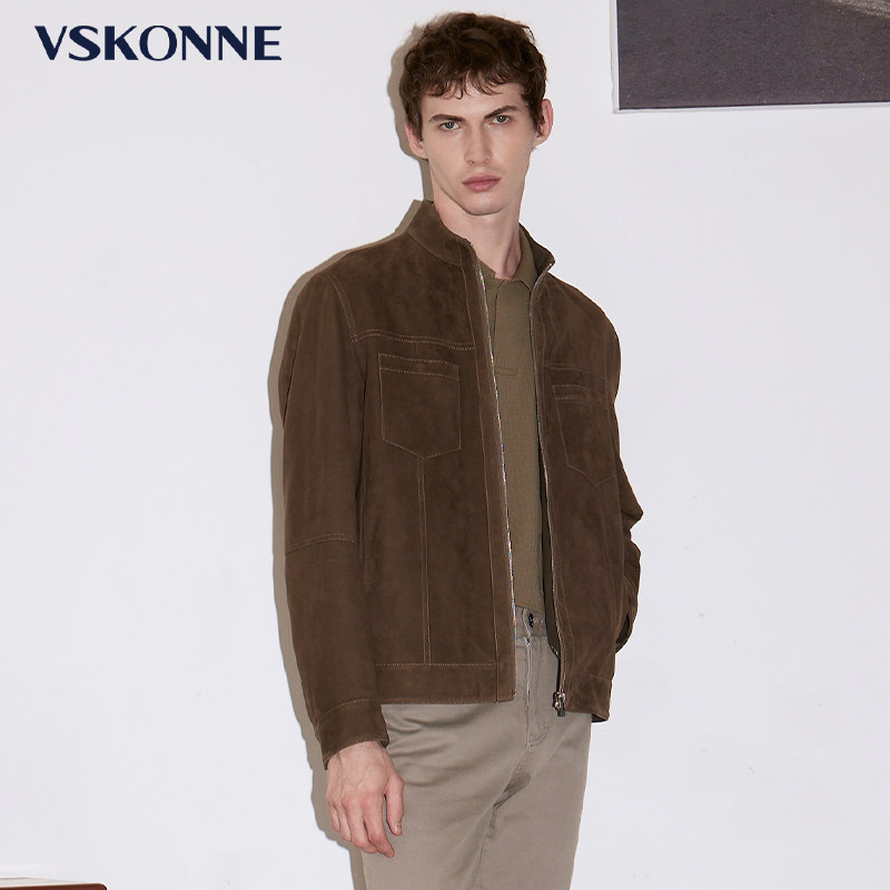 VSKONNE威斯康尼皮衣羊皮男商场同款 羊皮真皮皮衣外套男 立领短款